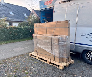 Om fredagen blev jeg ringet op af en fragtmand, som ville sikre sig at jeg var hjemme og ikke så lang tid efter ankom han med saunaen. Den blev læsset af og i løbet af et par timer var saunaen samlet og klar til brug.