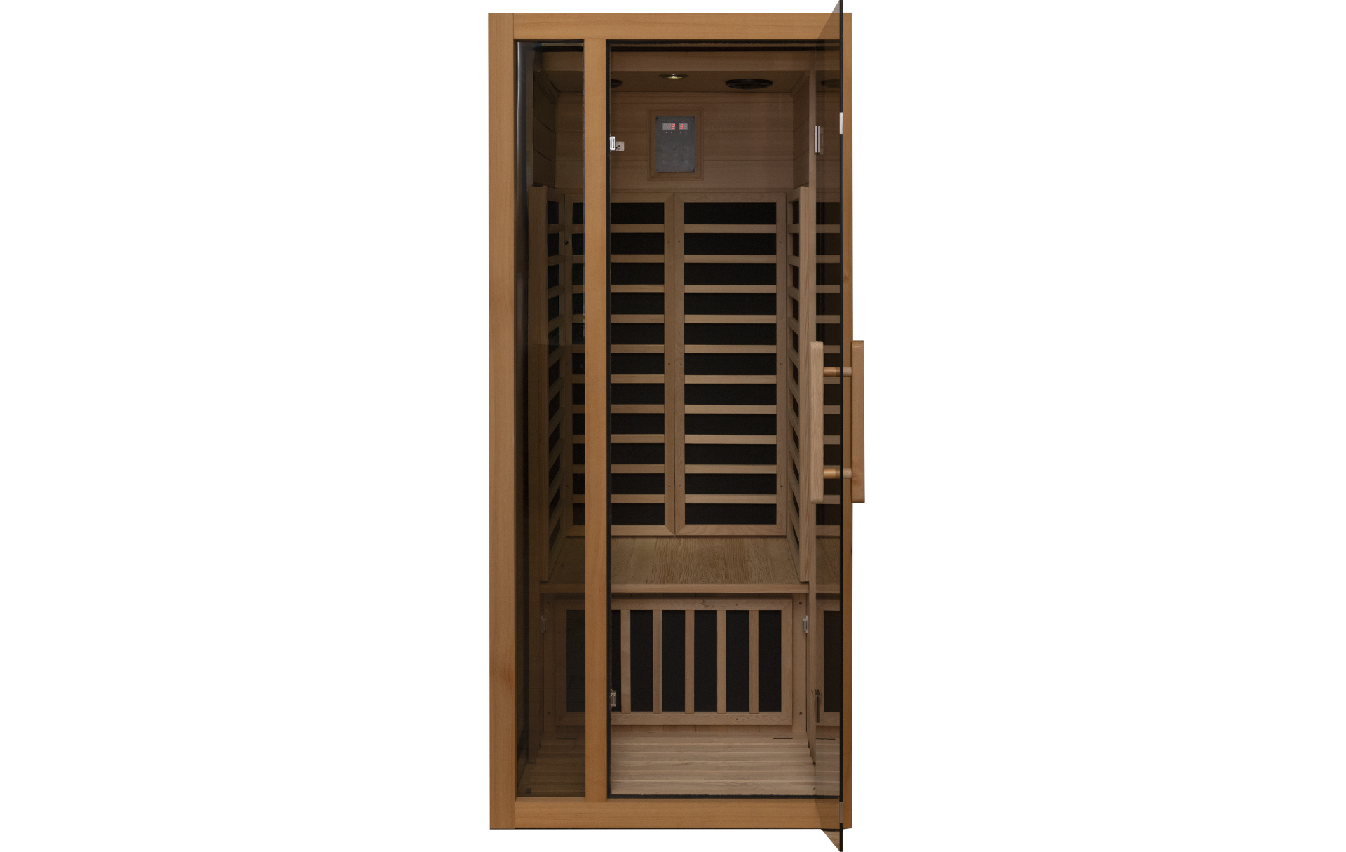 Som de første i Danmark kan vi præsentere denne pladsbesparende infrarøde sauna til én person.