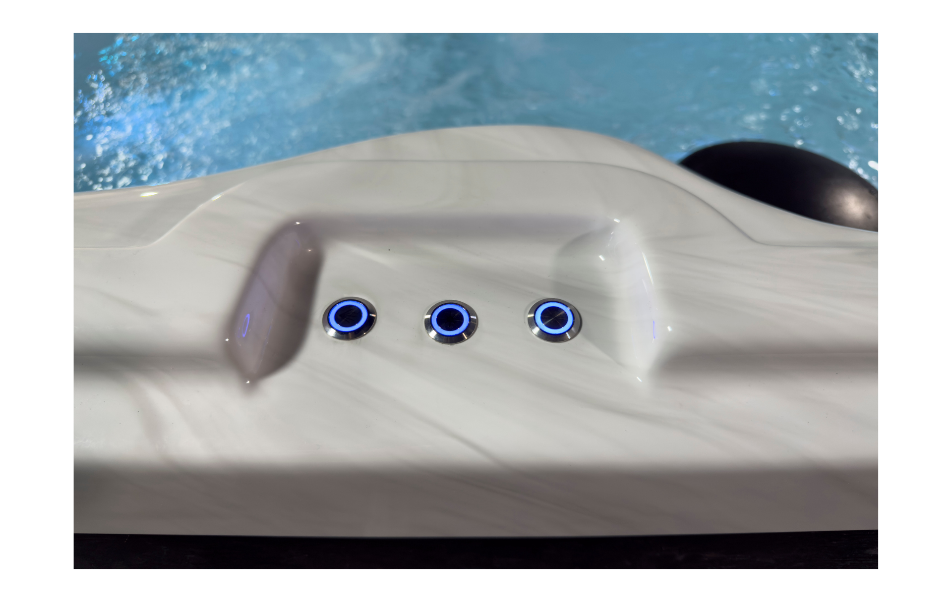 • Bruger-betjeningspanel – Kun 3 knapper til aktivering af vandpåfyldning/tømning, massagejets og terapilys