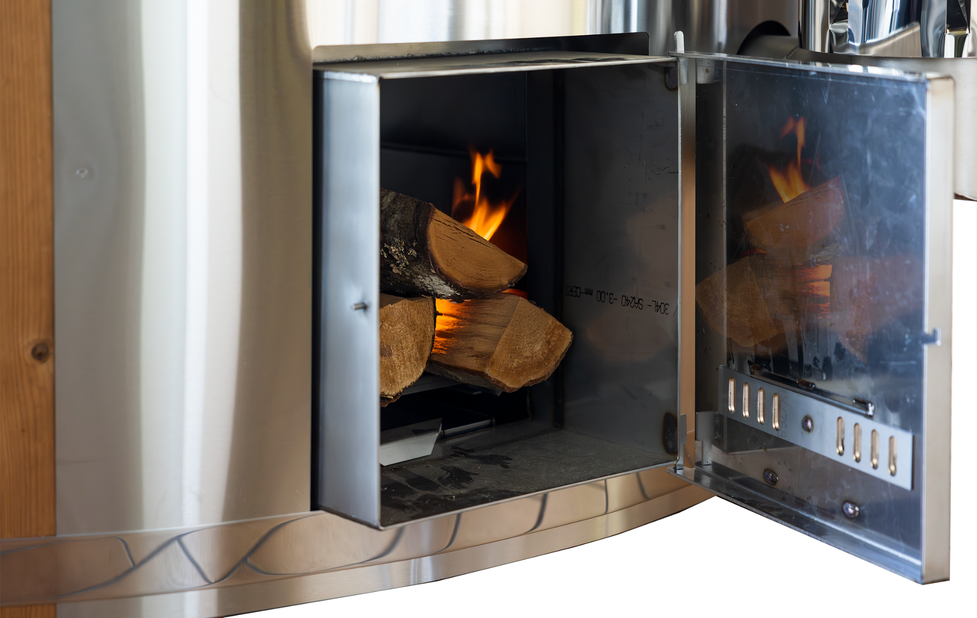 Vi anbefaler intern ovn med udvendig fyring for hurtig opvarmning af karret.